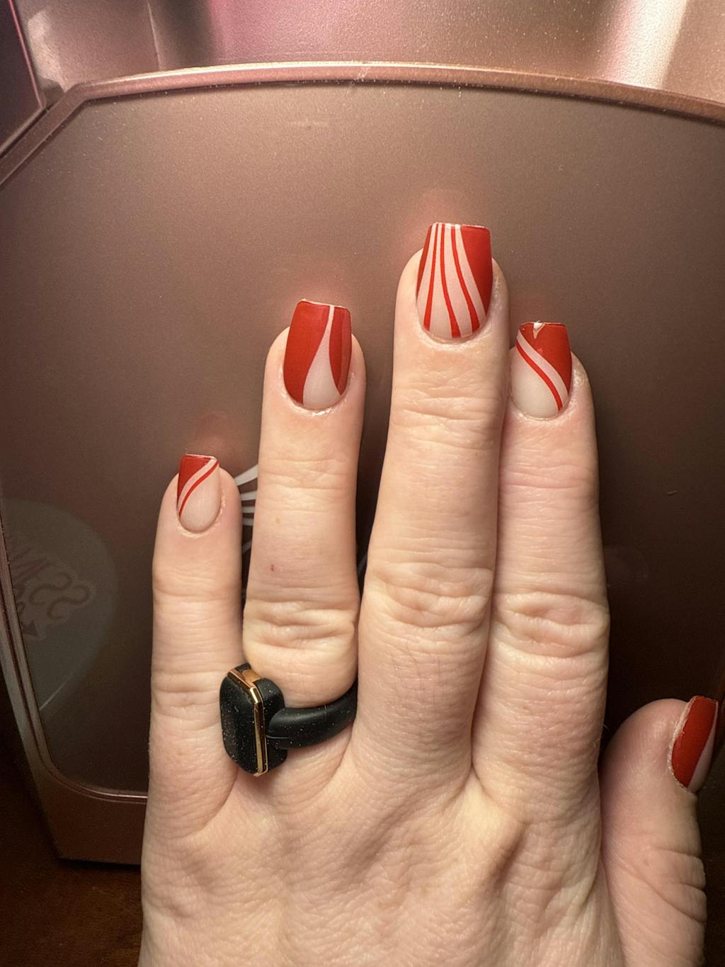 The CUTEST holiday mani! And the strips were so easy to work with! This is one of those designs that I could wear forever and ever. The nude-ish/sheer base is perfect for those who don't like to see obvious nail growth.