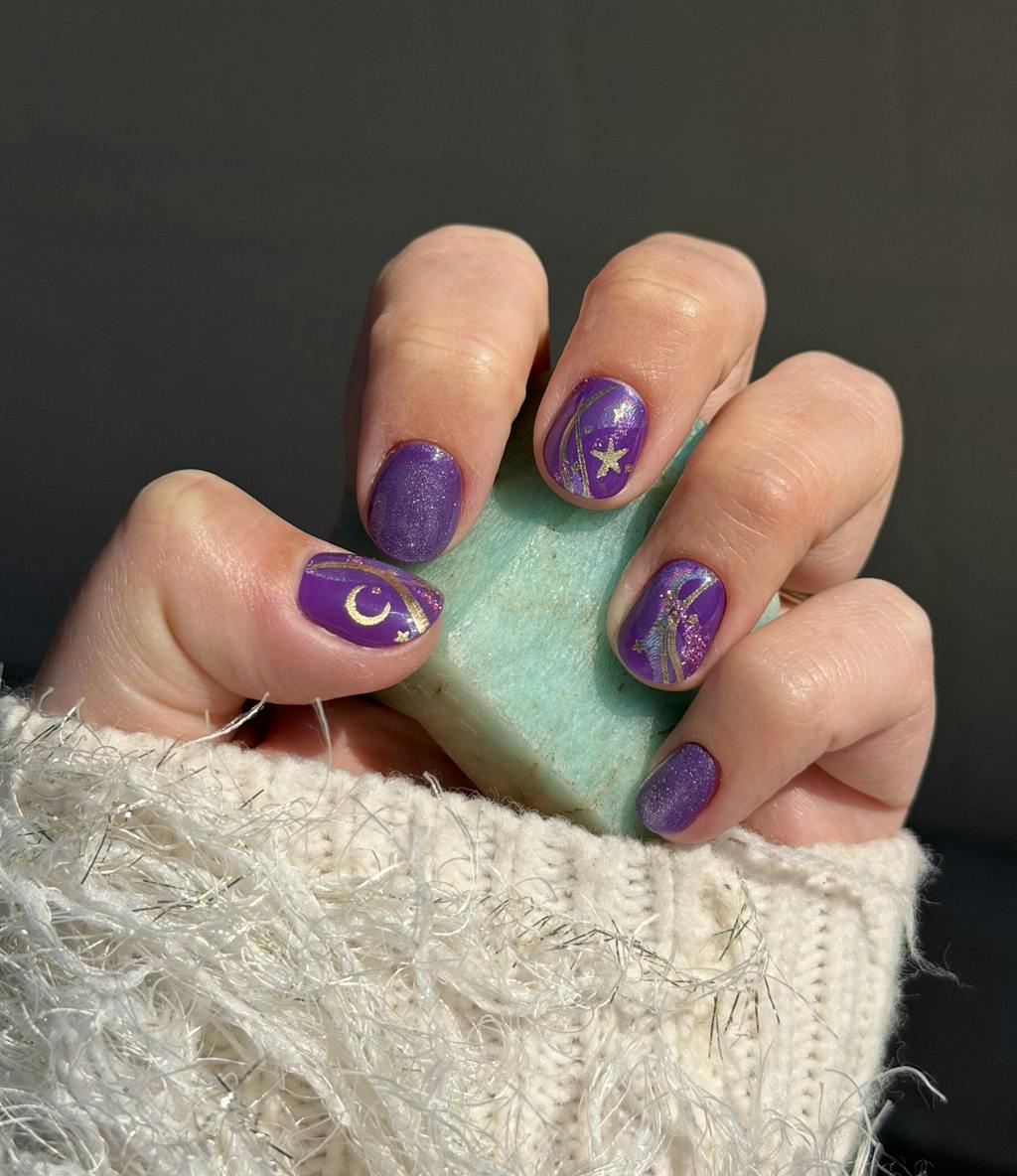 This set is so, so pretty!! The sparkles are amazing, the purple color is perfect and the hearts take it over the top! I inverted some of the gradient sparkle wraps to add even more variety. Lit Gels are the best!