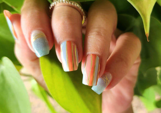 This set combined fall and beach perfectly. I did bring my nail toolkit on vacation but never needed it, the stronger adhesive on the newer sets is amazing! I loved it so much I even did my toes! 💕