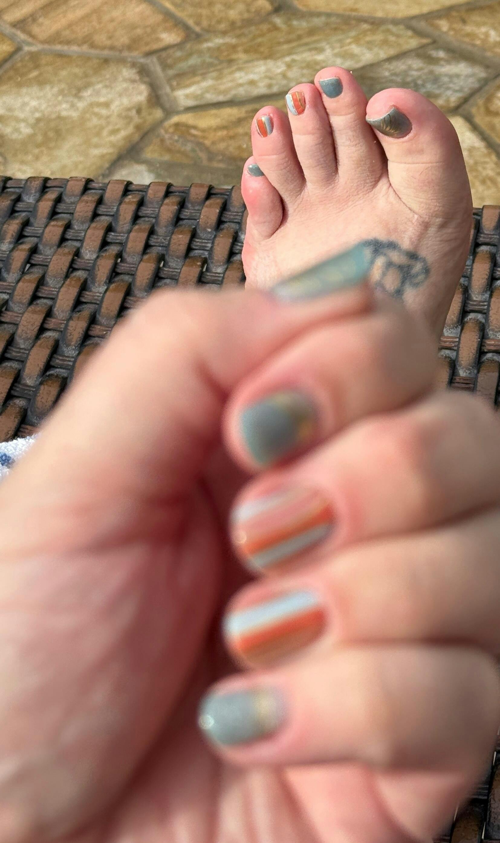 This set combined fall and beach perfectly. I did bring my nail toolkit on vacation but never needed it, the stronger adhesive on the newer sets is amazing! I loved it so much I even did my toes! 💕