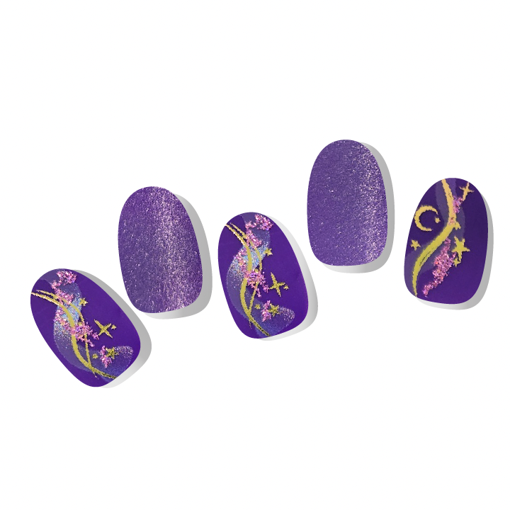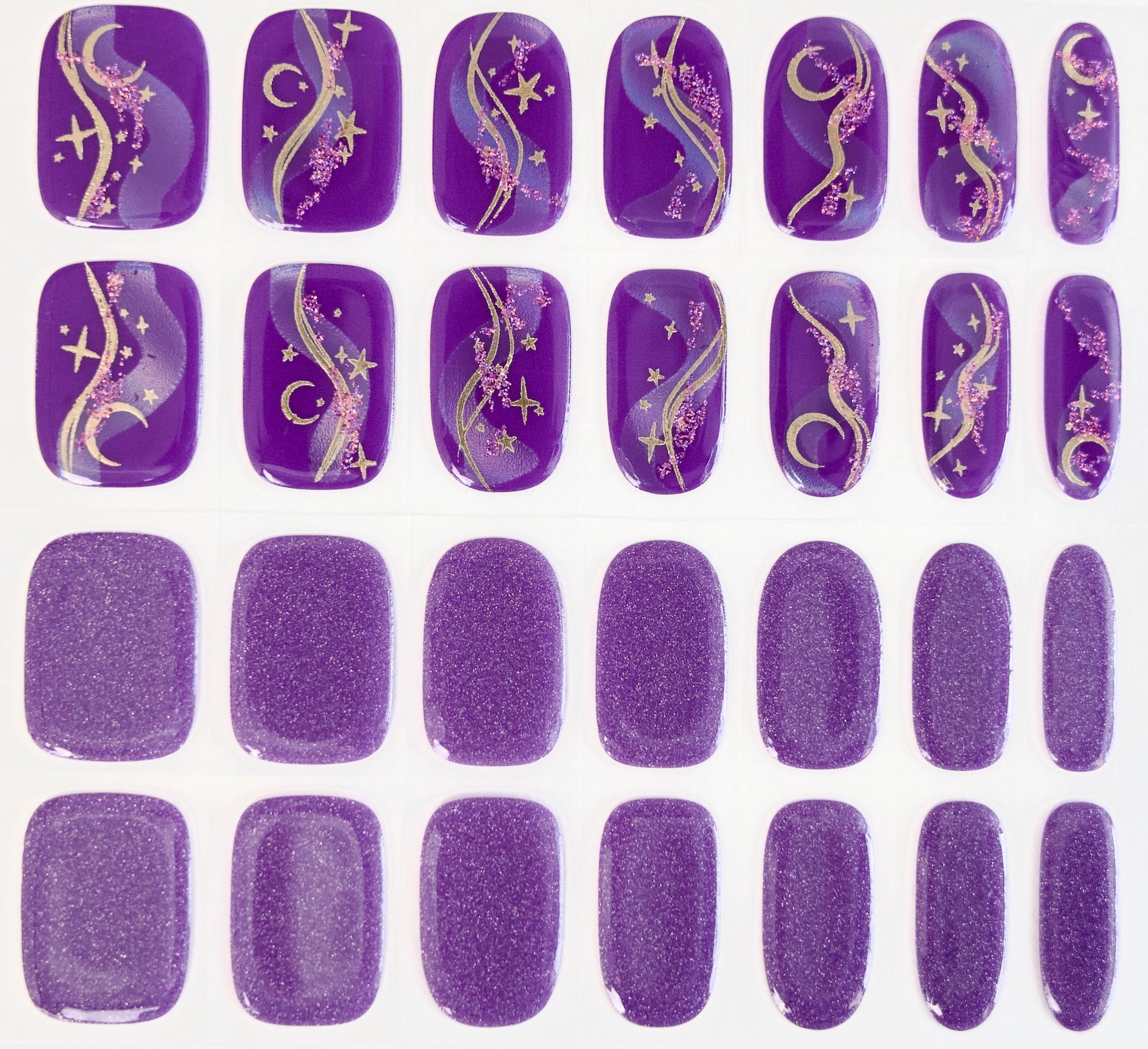 Deep violet shimmer meets delicate gold celestial detailing for a look that feels magical and luxe. Rich, glowing, and made to stand out.