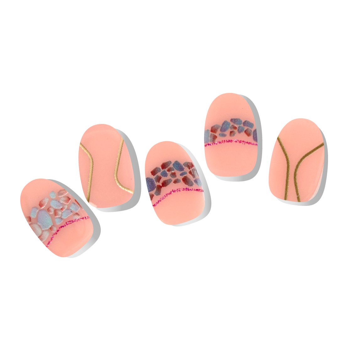 Warm peach tones meet delicate linework and textured accents for a serene, organic vibe. Minimal — but never boring.